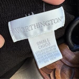 Worthington Black Crochet Long Sleeve Tunic Blouse Top Women’s Size Small. In good preowned condition. Measurements are approximate taken flat.