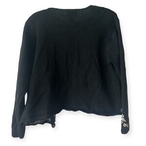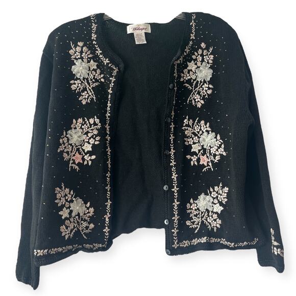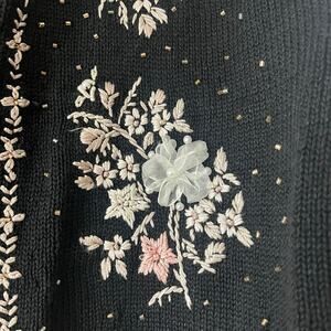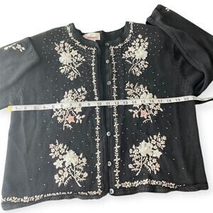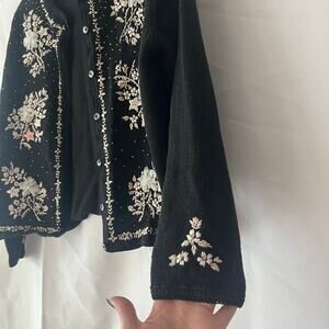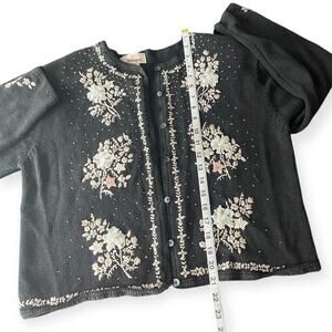 Worthington Black Floral Embroidered Beaded Knit Cardigan Grannycore Retro Sz M
