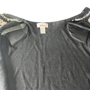 A beautiful vintage-inspired black knit cardigan featuring detailed floral embroidery, tiny seed bead accents, and dimensional chiffon/appliqué flowers. Classic button-down front. Cottagecore / grannycore aesthetic – perfect for layering. Includes original shoulder pads (can be removed if preferred).