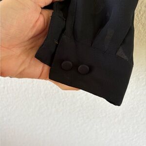 Vintage Chic black sheer button down with hand-beaded floral work. All beadowrk in perfect condition. Has shoulder pads intact. Perfect for versatile styling.