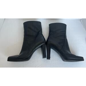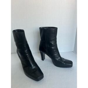 Worthington Black Leather High Heel Mid Calf Square Toe Zip Up Boots Size 9M