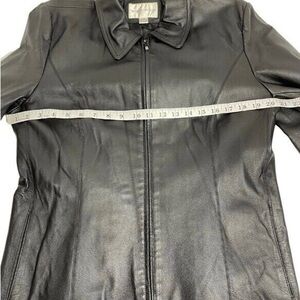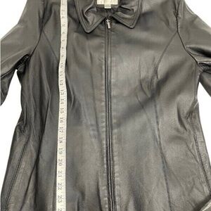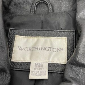 Sleek black leather jacket by Worthington. Classic design. Perfect for any occasion.