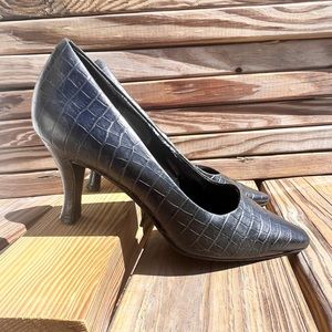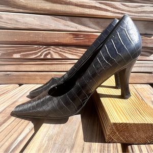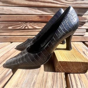 Worthington Black Leather Reptile Embossed Heels SZ 8.5! EUC!