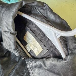 Worthington, Black Leather, Zip Jacket, Moto Jacket, Biker Jacket, Medium, 90s Style, Y2K, Vintage Leather, Minimalist, Fitted, Classic, Outerwear, Genuine Leather, Essential, Staple, Streetwear.