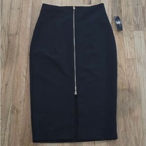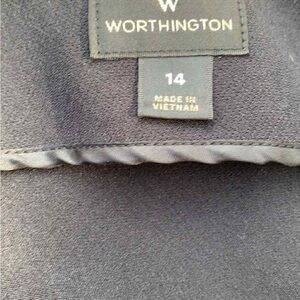 This sophisticated black midi skirt by Worthington is designed for both work and cocktail occasions. Featuring a sleek pencil silhouette with a stylish slit, it offers a flattering and polished look. The solid black fabric ensures a timeless appeal, making it a versatile wardrobe staple.