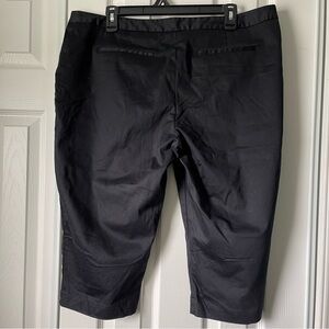 Stylish black capri pants. Perfect for any occasion. Black capris by Worthington modern fit, size 16P front zipper with 2 clasp in front. Front side pockets and short rear pockets preowned like new.