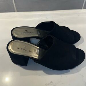 Step into sophistication with Worthington's black mules, designed for both elegance and comfort. These shoes boast a sleek silhouette and a polished finish, perfect for any occasion. Their timeless design ensures they remain a versatile addition to your footwear collection.