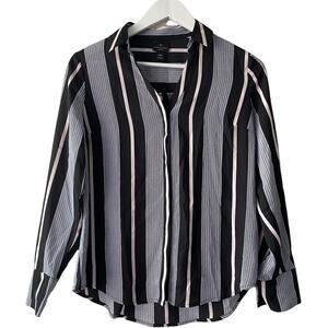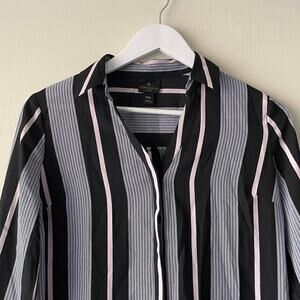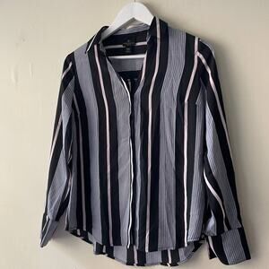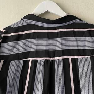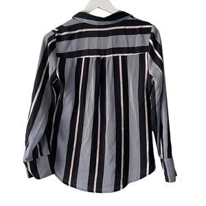 Worthington Black & Pink Striped Button Down Long Sleeve Chiffon Shirt - PXS