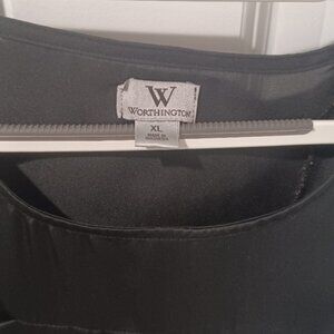 Worthington Black Pleated Ruched Cap Sleeve Crew Neck Lightweight Tunic XL