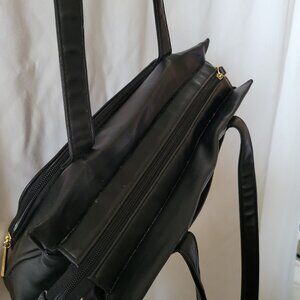 Worthington Black Purse Double Strap brass colored hardware storage LOOKS NEW