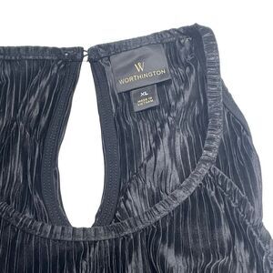 Worthington Black Semi Sheer Chevron Crinkle Goddess Tank