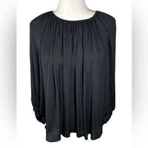 Worthington Black Silky Dot Print Flowy Balloon Sleeve Blouse