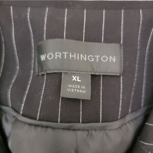 Worthington Black Suit Jacket Full Vertical Stripes Blazer One Front Button 2 Front Faux Pockets Size XL