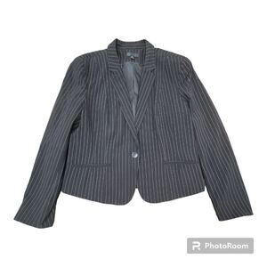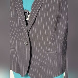 Worthington Black Suit Jacket Vertical Stipes Blazer One Front Button Size XL