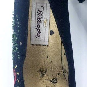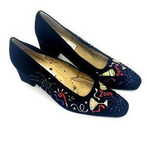 Vintage Worthington Black Velvet Embroidered Y2K 2000 Square Toe Heels Slip On Pumps