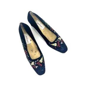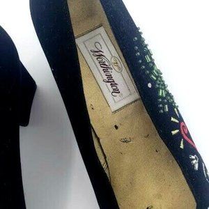 Worthington Black Velvet Embroidered Y2K 2000 Square Toe Heels Vintage Loafers