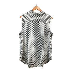 Worthington Black & White Geometric Pattern Sleeveless Button-Up Blouse Size XL