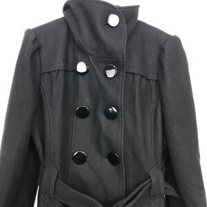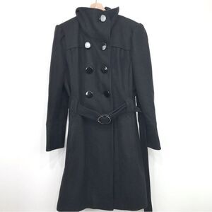 Worthington Black Wool Blend Button Up Trench Coat