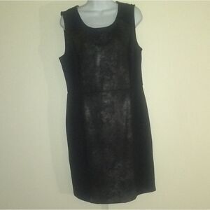 Classy sheath dress. Sleeveless black dress with silver foiled center inserts.