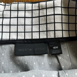 Worthington Black and White Grid Midi Skirt Lightweight Size 18W Back Zipper