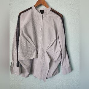 Worthington Black and White Asymmetrical Button Down Shirt with Mandarin Collar