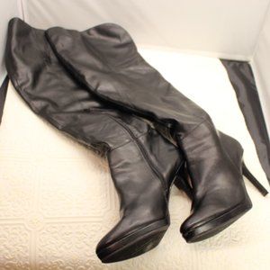 Worthington Black size 8.5 tall boot ,4 " heel, all man made material ,,good conditioinside zipper