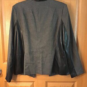 Worthington Size 16 Blazer, Black with white Polka Dots, two front pockets, Faux Leather collar and sides of blazer, Silk Underlay