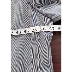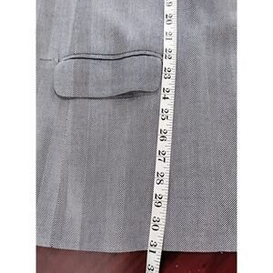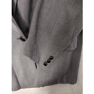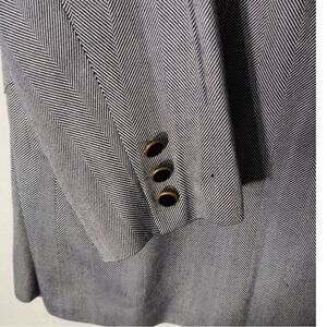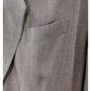 Features: Single Breasted One Button Close Lined Flap Pockets 3 Button Sleeve detail Navy Blue Herringbone Stripe Pattern