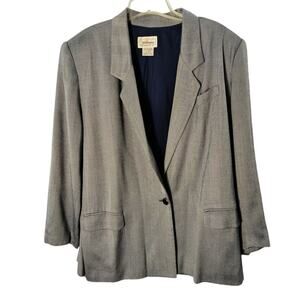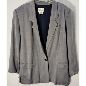 Worthington Blazer Wmn's Sz 22W Navy Herringbone Stripe One Button Career Jacket