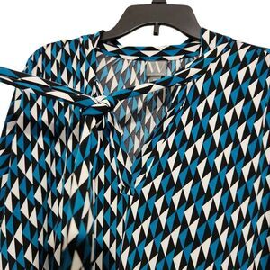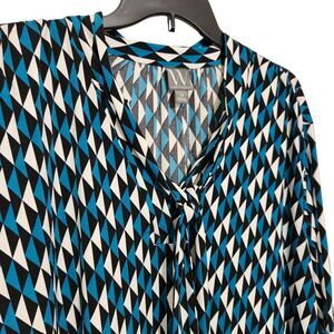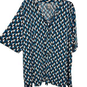 Worthington Blouse For Women Size 2X Blue Chevron Pattern Tunic top Tie Front