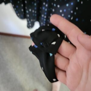 Worthington Blouse Long Sleeve 1/2 Button Front Polka Dot Black, White, Blue Tie Cuff, Size XL. Comes from a smoke-free home.