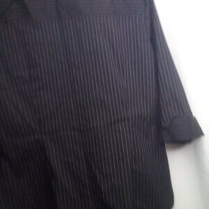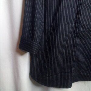 Worthington Blouse Shirt Women L Button Up 3/4 Sleeve Stripe Black White
