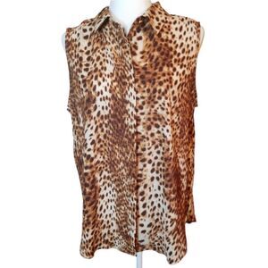 Worthington Blouse Sleeveless Animal Print High- Low Hemline Size Large