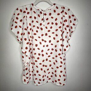 Worthington Blouse White with Red Flowers Womens SZ M Floral Office Work Church