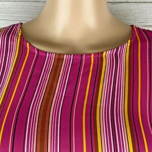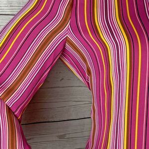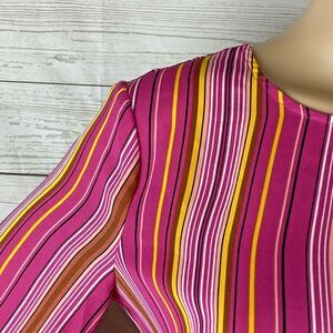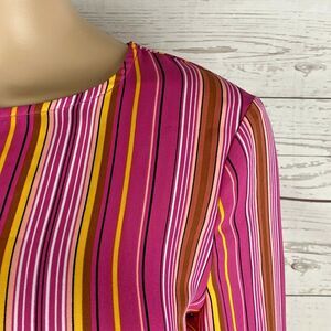 Worthington Blouse XS Pink Orange White Striped Flare Sleeve Tie Back Bow Shirt