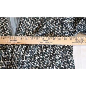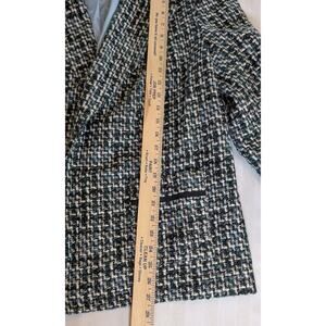 The Worthington Woman Blue, Black, White Tweed Lined Women's Blazer Coat in size 20W is a stylish and versatile addition to any woman's wardrobe. Made from a blend of acrylic and wool with a polyester lining, this blazer features a plaid pattern and black trim accents for a classic look. The long sleeves and regular fit make it suitable for various occasions, from casual outings to business meetings.