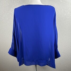 Worthington Blue Flowy Sheer Long Sleeve Top Size Large