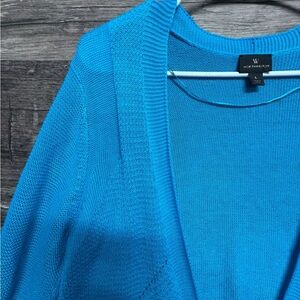 This blue cardigan from Worthington showcases a relaxed fit and an open-front design, ideal for layering. The shawl collar adds a sophisticated touch, while the three-quarter sleeves provide a contemporary style. Its knit texture ensures comfort and versatility for any occasion.