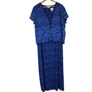 Worthington Blue Maxi Dress Sleeveless with One Button Jacket Lightweight 14