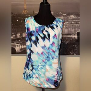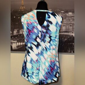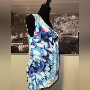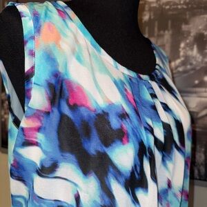 Elevate your wardrobe with this stylish abstract sleeveless top, featuring vibrant blue and pink hues. Perfect for any occasion.