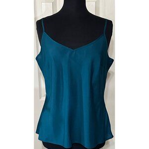 Worthington Brand Teal Blue Sheer Ruffled Blouse 100% Polyester Women's Size L