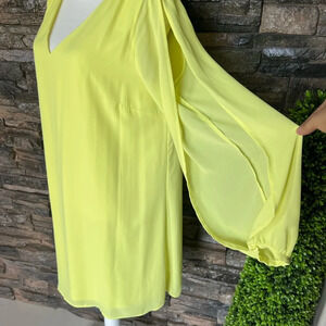 Elegant Worthington dress in bright yellow. Features a stylish V-neck and long sleeves. Ideal for versatile wear.
