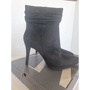 Worthington Brontë Black Suede Heeled Ankle Boots 11M Memory Foam- NIB