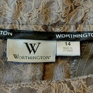 Worthington Brown Damask Patterned Cropped Skinny Pants Size 14
