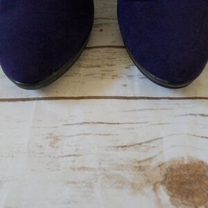 These stunning purple heeled boots will make heads turn! The tall shaft features a hidden stretch panel. The boots also have an adjustable buckle. I also have these boots in a fantastic smoky gray(SOLD!). These boots do come with their original box.