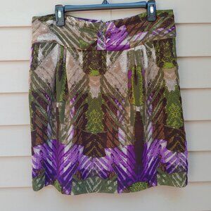 Worthington Chiffon A-Line Skirt Multicolor Abstract Green Tan Purple Pockets