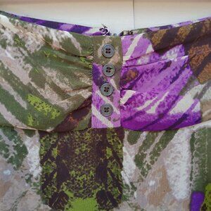 Worthington Chiffon A-Line Skirt Multicolor Abstract Green Tan Purple Pockets Artistic