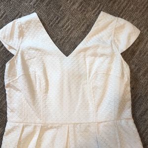 NWOT Worthington cream tulip style dress. Fun inset pattern. Exposed gold zipper on back. Approx. chest measurement shown in pics. Great condition - no flaws to note. Please see all detailed photos provided in listing. Sz 16