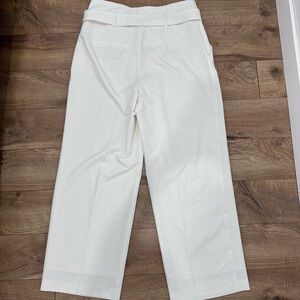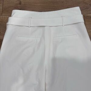 Chic cream trousers with a stylish belt. Perfect for versatile styling. Work attire, business, business casual, trendy, fashion, chic, work, corporate, gold accents.