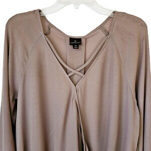 Worthington Crossover Blouse – Mauve/Beige - Lightweight & Flowy - Size XL